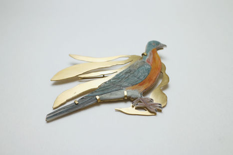 於是我們製作了一系列的動物黃銅胸針,將手繪好的旅鴿鑲嵌在一起,好好保存著;是關於被滅絕的動物故事。